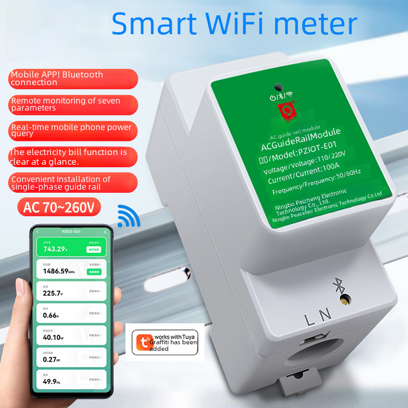 peacefair Tuya Smart Wi -Fi Электрический счетчик фазовой железнодорожный метр напряжение Ammeter Mobile App Удаленный мониторинг