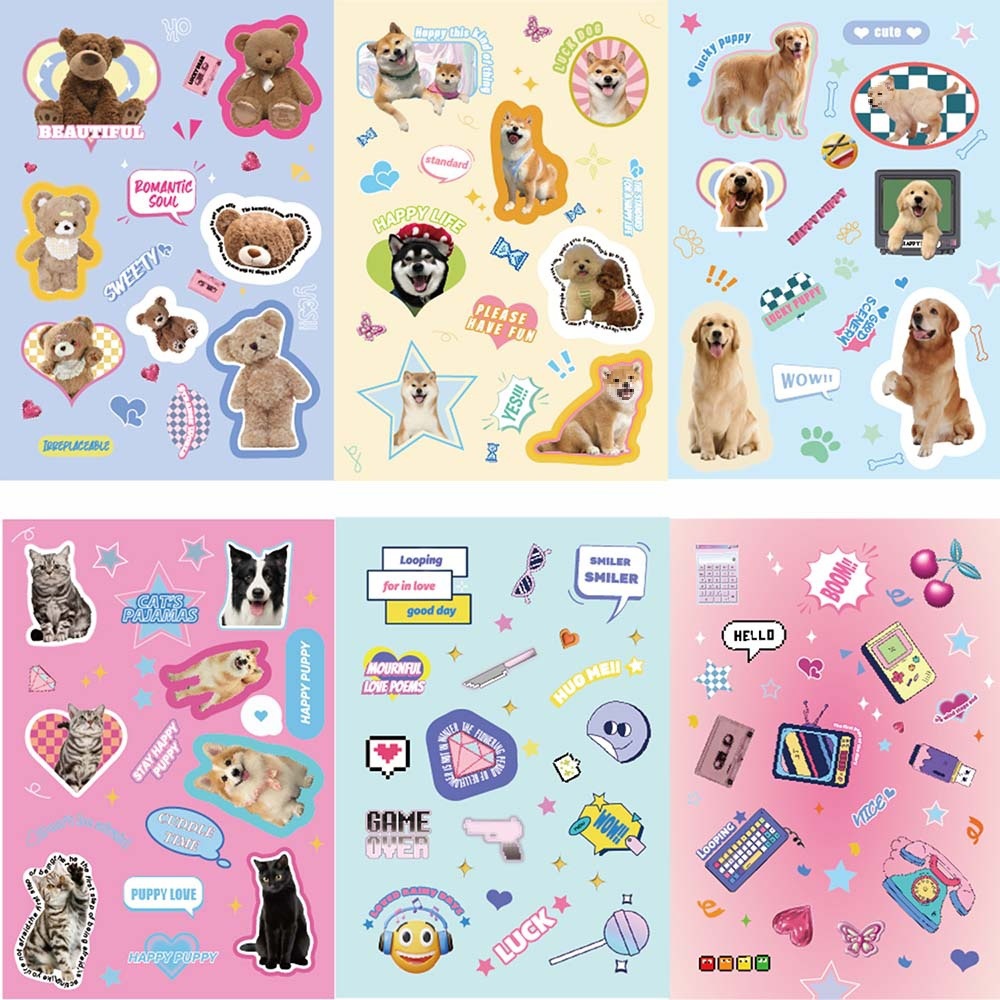 Супер экономически эффективные 16 милые наклейки на головоломки с домашними животными в стиле стиль милый собачья медведь коллаж украшения рука рука одно кусок, чтобы получить партию