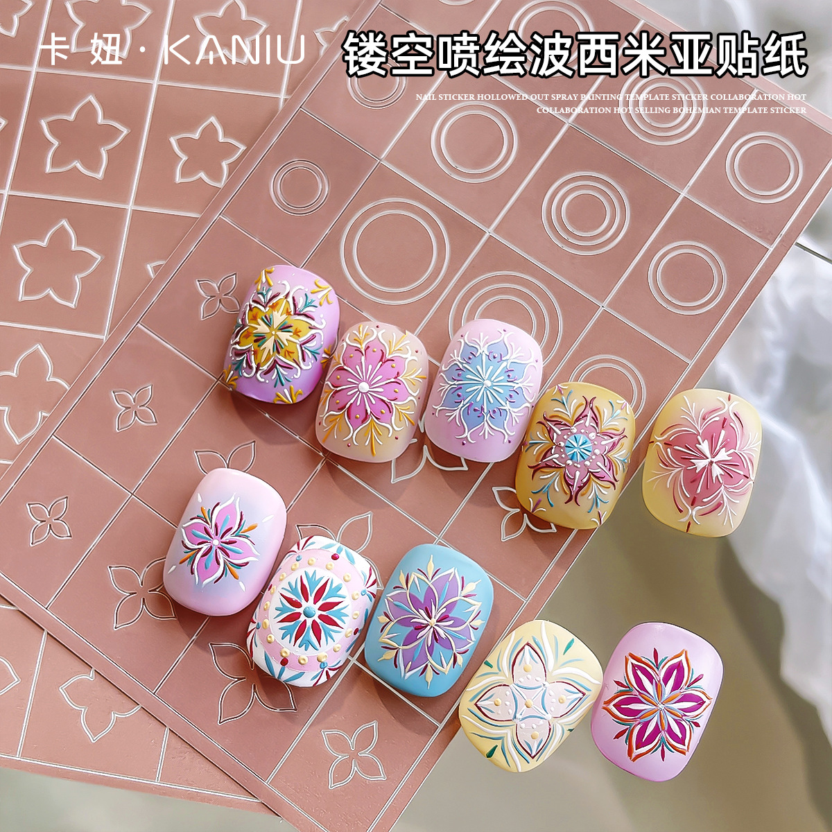 Струйная наклейка для маникюра, окрашенный шаблон, наклейки для ногтей, украшение для ногтей, стиль бохо, 2024 года, новая коллекция, популярно в интернете