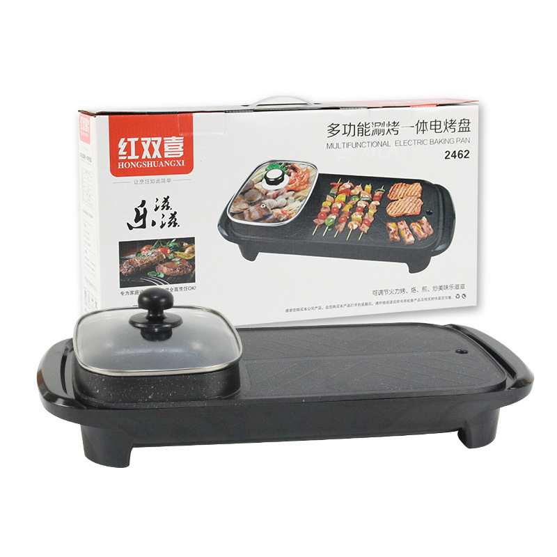 Многофункциональный прямоугольный шабу-шабу-в одном горшечный горшок для корейского домохозяйства электрический горячий горшок горячий горшок с двумя в одном в одном подарке
