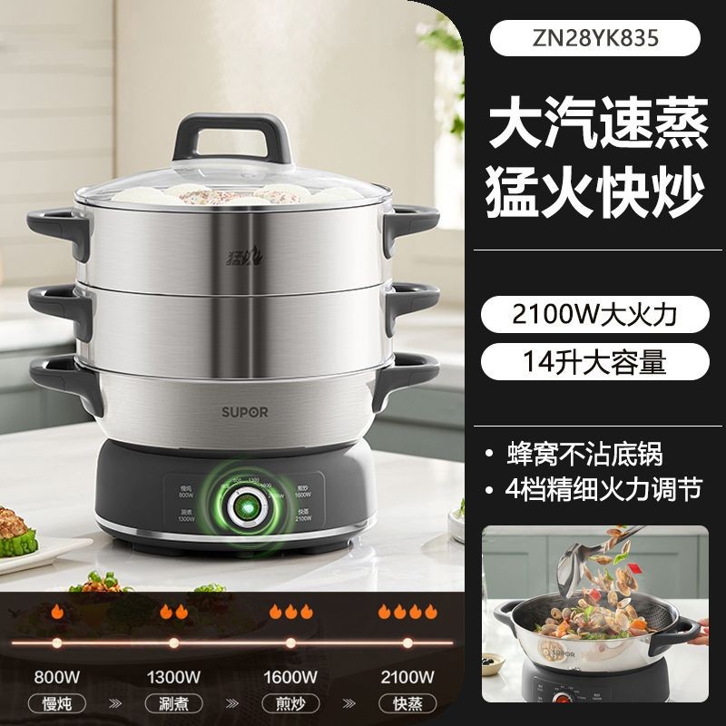 苏泊尔 Вместительный и большой термос для домашнего использования из нержавеющей стали, универсальная пароварка