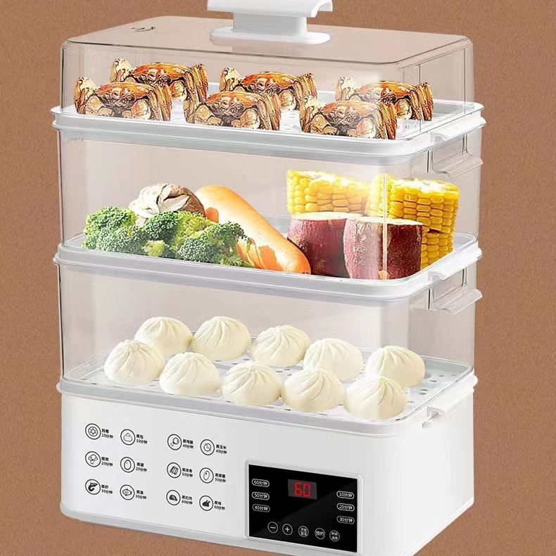 Многофункциональная электрическая пароход Хозяйственная интеллектуальная встреча Трех слоя большая пароварка для пароварки.