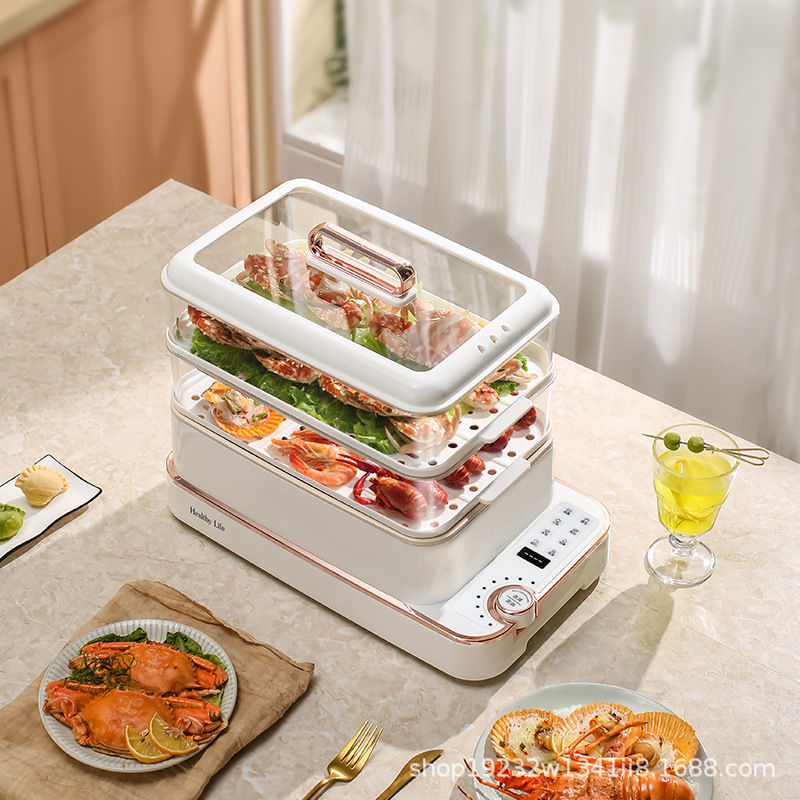Zhigao Electric Steamer Многофункциональный домохозяйный трехслойный домашний пароход 2024 Новый паровар для приготовления растущей костюмы.