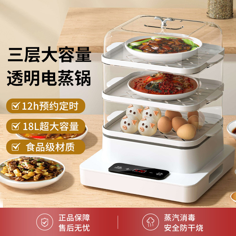Электрический пароход Многоофункциональный семейный семейный три -слой 18L большой мощность пароварка резервация.