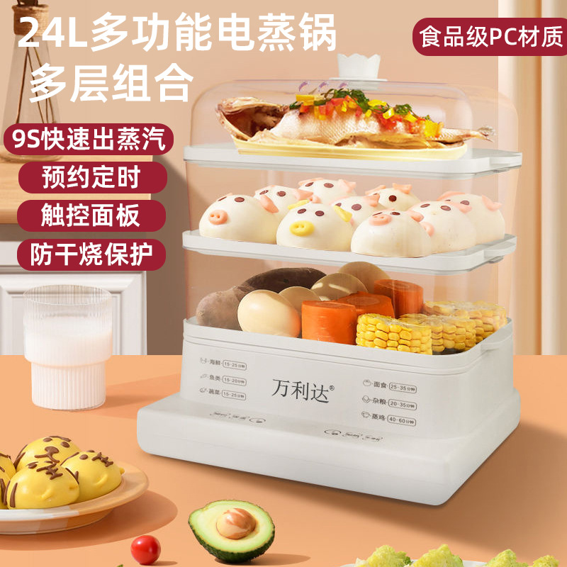 万利达 Многофункциональный пароход домашний пароход с большой мощностью трех -слоя пароварки паровар для завтрака пароварки вареные яйца оптом