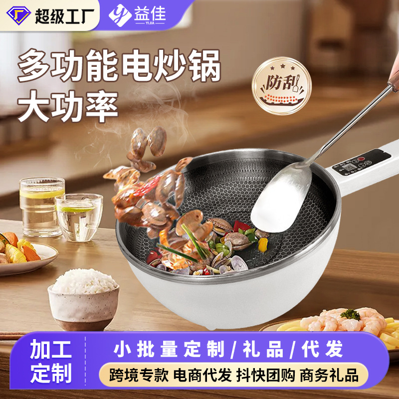 Электрический вок с сотами, электрическая кастрюля, бытовая электрическая кастрюля, кастрюля с антипригарным покрытием, электрическая кастрюля для общежития, электрическая кастрюля «все в одном» для жарки и приготовления пищи, модель с таймером