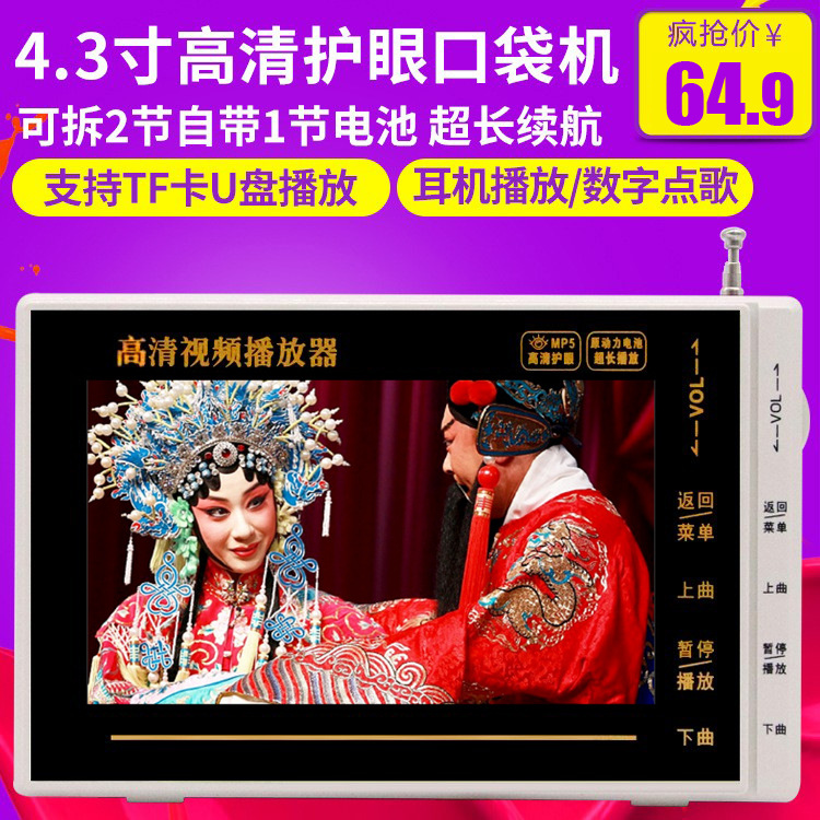 金正 XY-1071 5,5-дюймовый старик поет и квадратные танцы HD Video Player поддерживает наушники