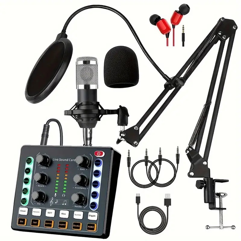 Разнообразные музыкальные инструменты для прямой трансляции, микрофон, ноутбук, универсальный мобильный телефон, английская версия, полный комплект, 48v
