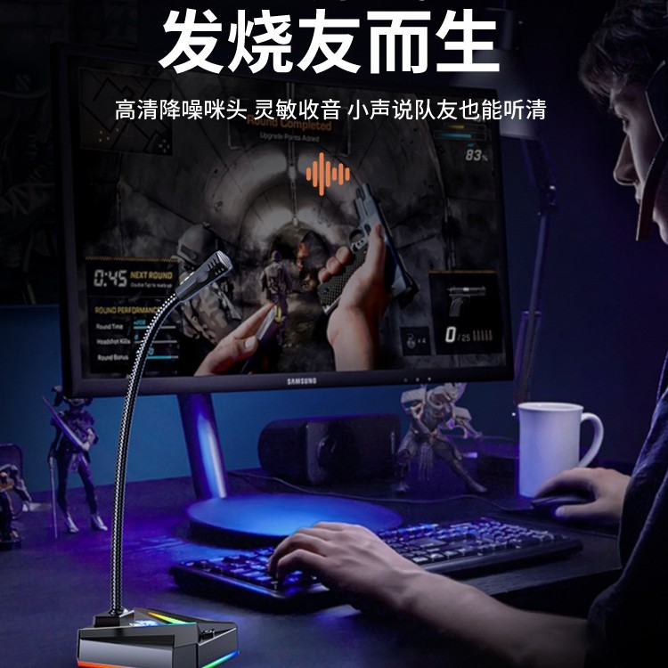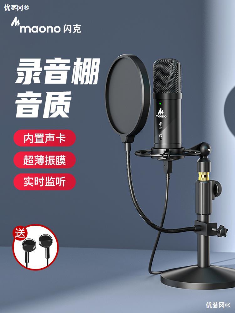 Микрофон, компьютер, настольная записи записей, выделенное якорь в прямом эфире, голосовое оборудование, прозвучающее онлайн -курс, записывающие песни