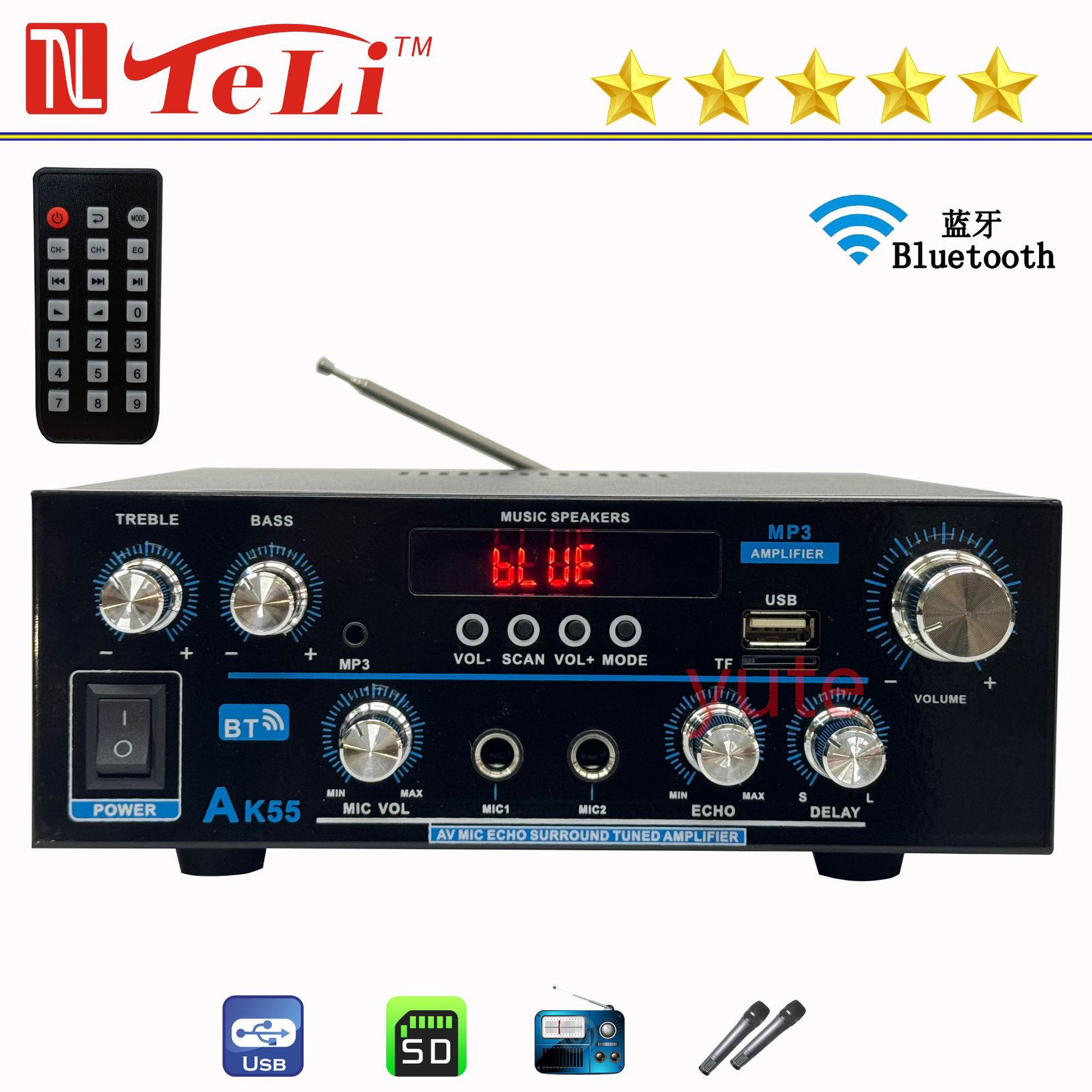 Усилитель, USB-флеш-накопитель, высокая мощность, bluetooth, прямые продажи с завода