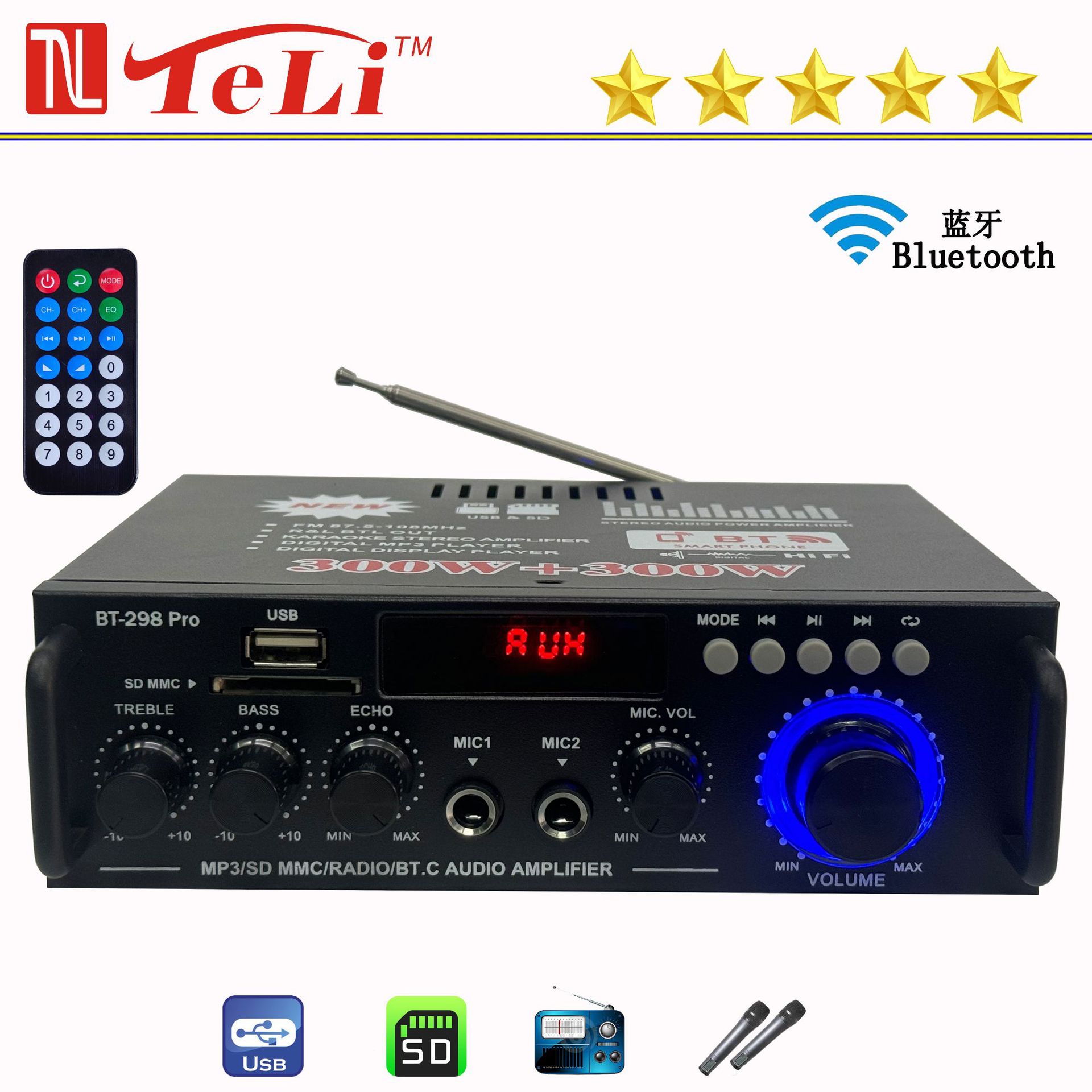Маленький усилитель, высокая мощность, 220v, bluetooth