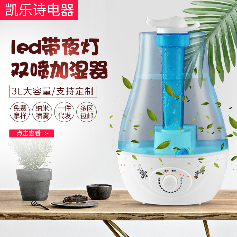 Поставка мини -дома увлажнитель с двойным спрей 3L Большая емкость со светодиодной лампой и увлажнителем ультразвукового распылителя