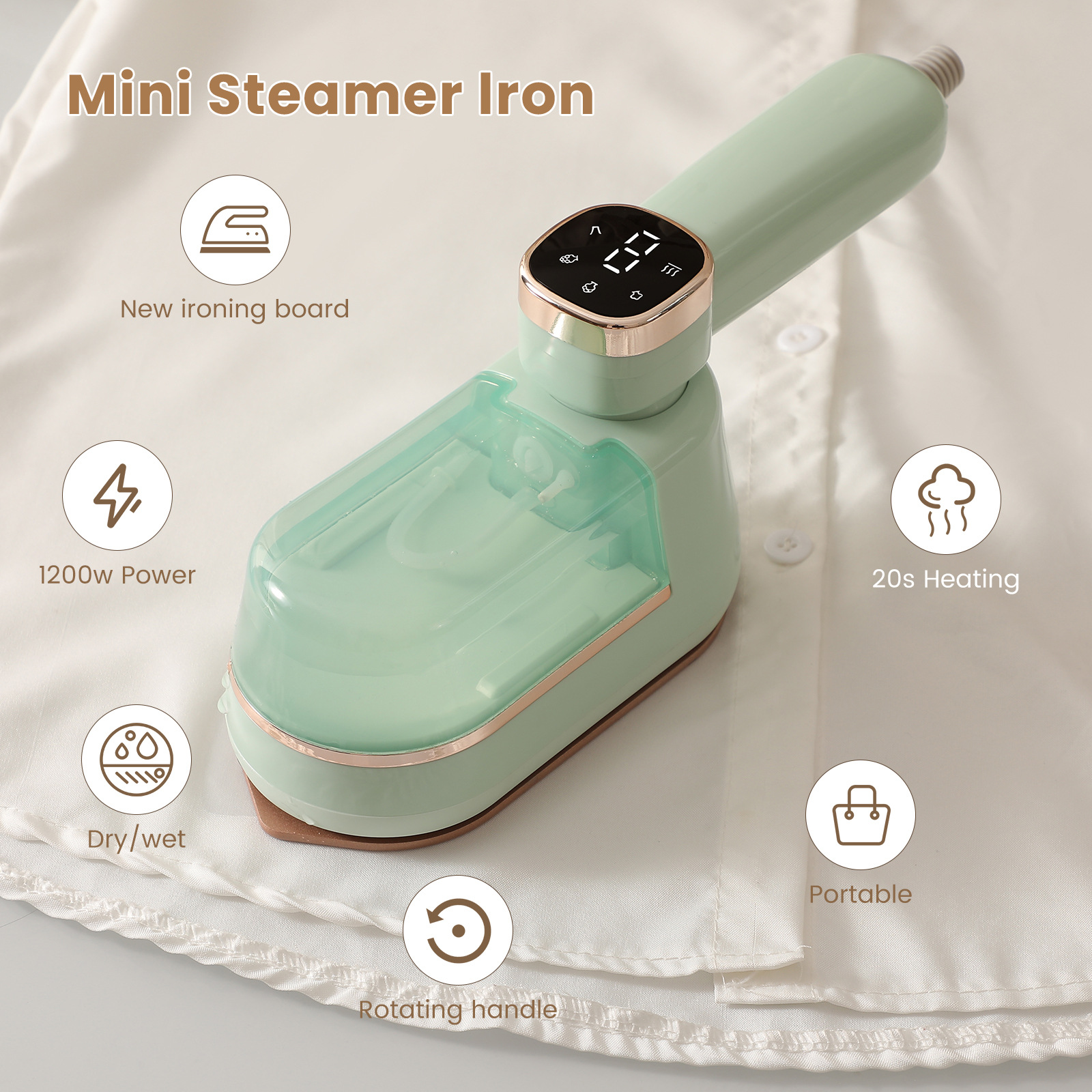 Руковолочный железо небольшая портативная домашняя паровая электрическая общежития для общежития.