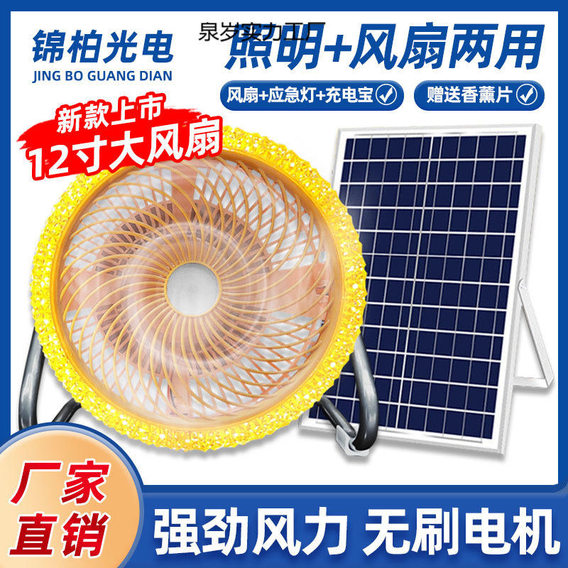 Портативный дорожный вентилятор на солнечной энергии, светильник для кемпинга, 12 дюймов
