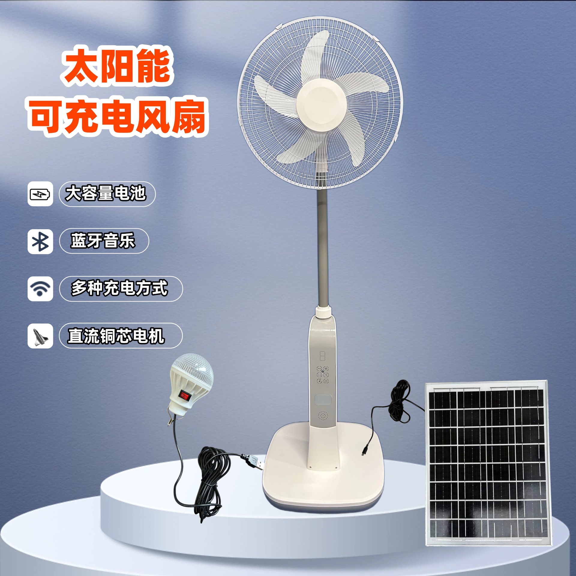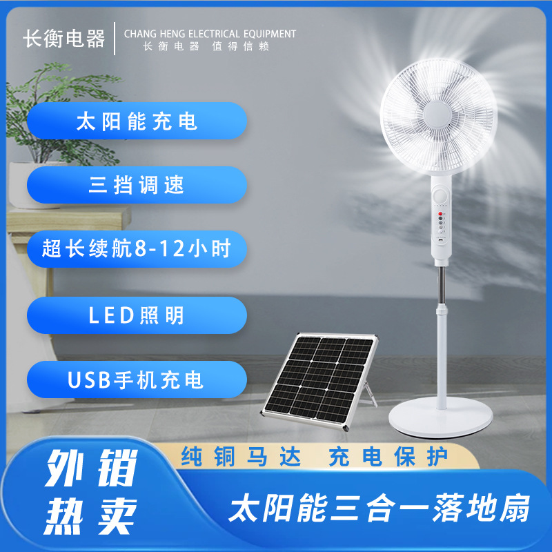 Вентилятор на солнечной энергии, литиевые батарейки с зарядкой, медный беззвучный мотор, 16 дюймов