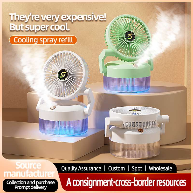 Настольный вентилятор, белый увлажнитель воздуха, спрей