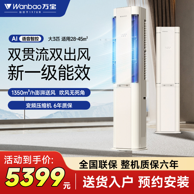 万宝 Кондиционер большой 3-матч вертикальный шкаф Новое первое переменное частотное охлаждение и охлаждение мягкий ветер Интеллектуальный голос домашняя гостиная кондиционер воздуха