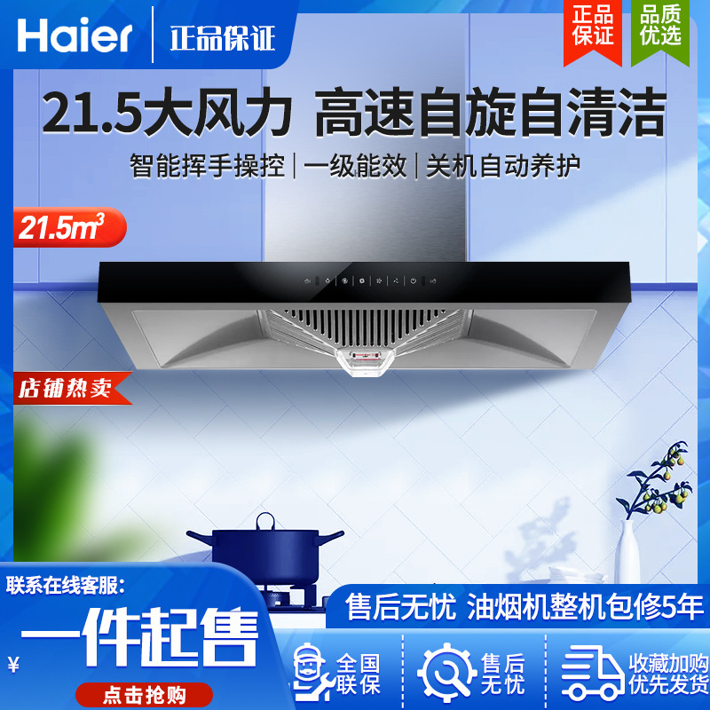 Вытяжка Haier, высокочастотная стирка при отжиме, 21 м³, большое всасывание, большой объем воздуха, волна, ручное интеллектуальное управление, вытяжка с верхним всасыванием