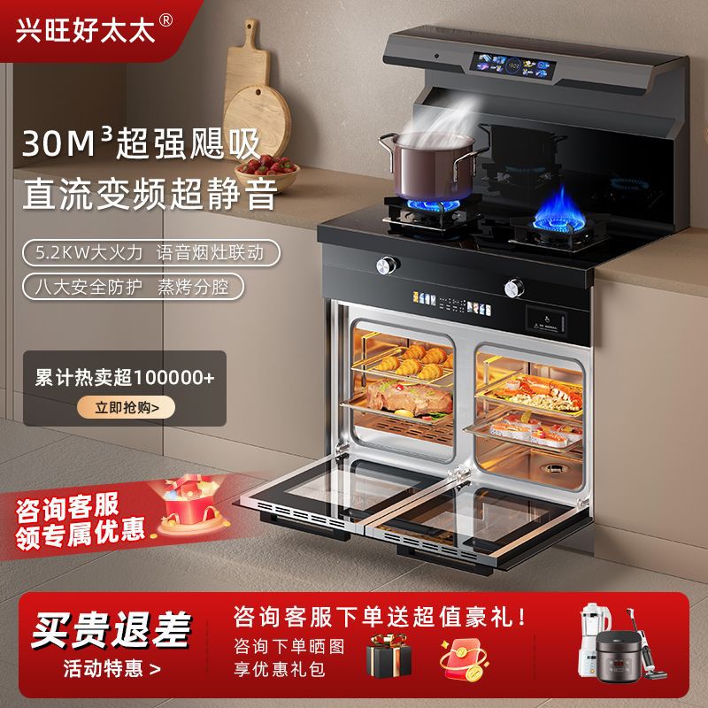 Хорошая жена много -функциональная интегрированная плита паровой паровай интегрированная печь домашняя кухня частота капюшона Три -слой дезинфекция