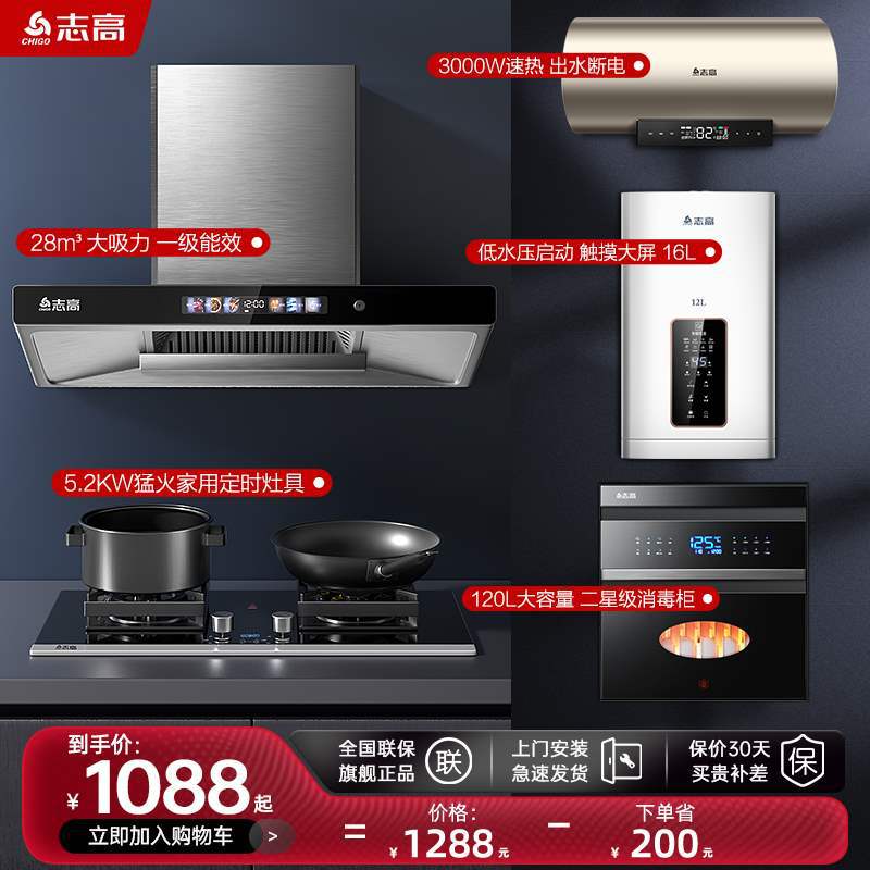 Zhigo Polymark Higmotic Gas Cooler Плидочная плита Плита Плита Кухня Трехэтажные набор в сочетании с домашними дымовыми печи Электричество и тепловое тепло