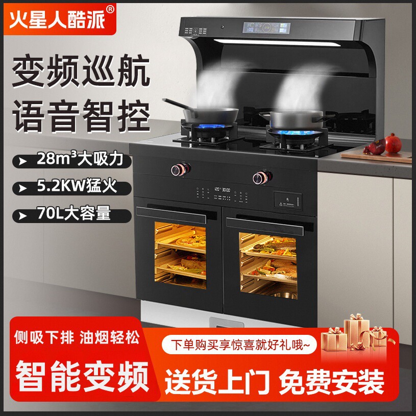 火星人酷派 Интегрированная плита домохозяйств интегрированная печь Интеллектуальная переменная частота паровой духовки Нижний диапазон сброса газовая плита капюшона