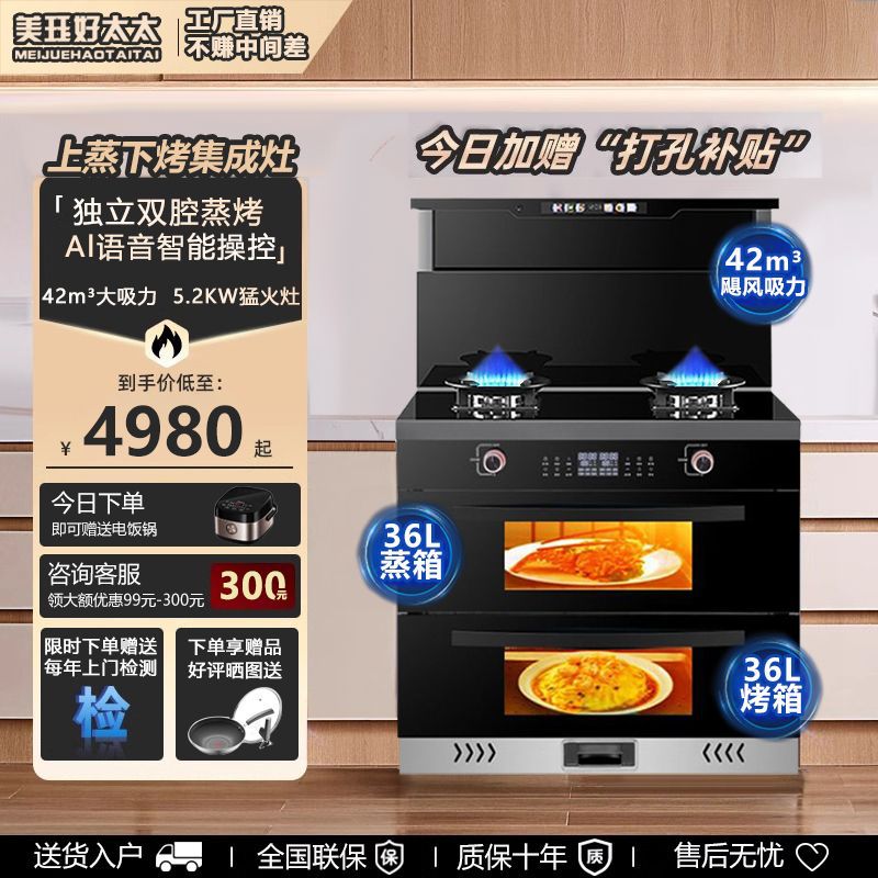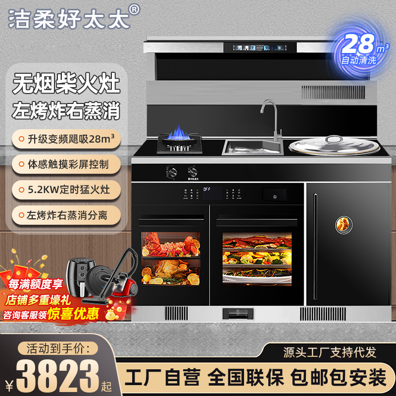 Хорошая жена интегрированная плита Home Kitchen Comturnaty Overnation Multi -функциональная паровая, выпечка и плита, стирание капюшона, установка сумки с капюшоном