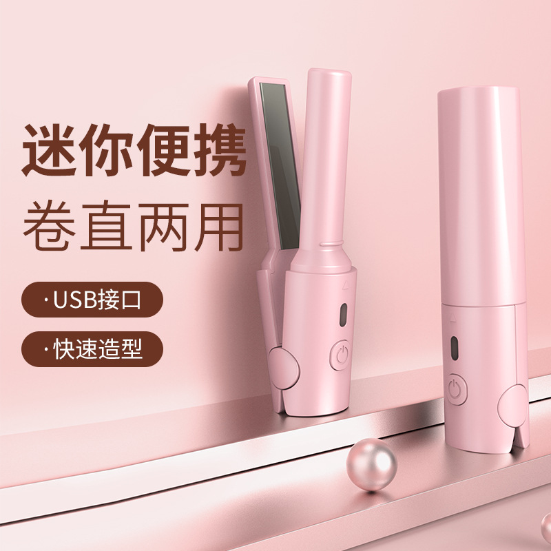 Крест -Борандером Новый ленивый прямой волосы Беспроводные прямые волосы маленькие USB -зарядка Портативная переходная рулона прямой артефакт с двойным использованием