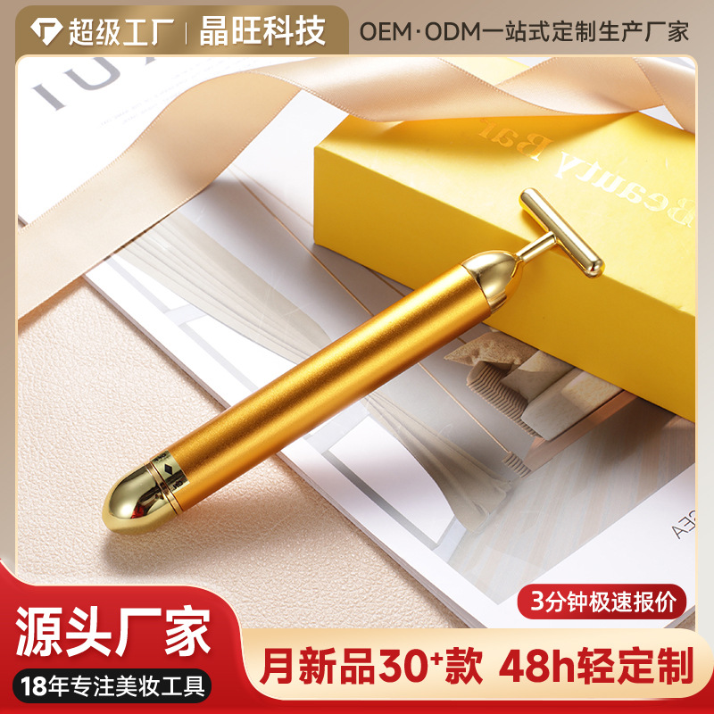 Оптовая продажа, косметическая палочка, 24-каратная золотая палочка, бытовой массажер для лица, золотой V-инструмент для лица, японский артефакт с V-образным лицом