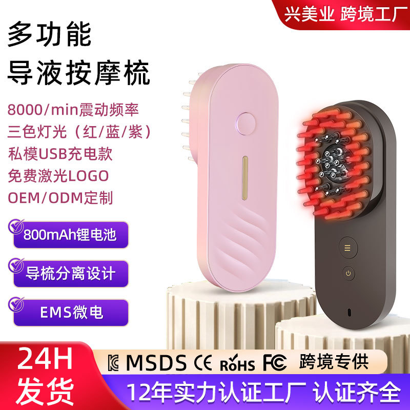 Микрок -ток Светодиодные и синие световые электрические скальп массаж расчесывание EMS Отрицательное ионное здоровье.