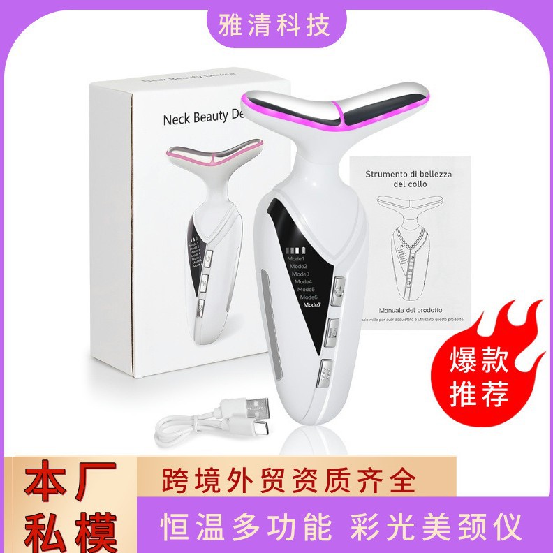 Осветляющий лечебный подтягивающий косметический массажер, 7 цветов, с защитой шеи