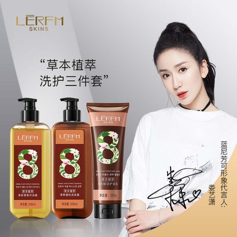 蓝尼芳可 Травяной освежающий шампунь с экстрактом растений, гель для душа, крем для волос, комплект, придает объем, уход за волосами, 3 предмета
