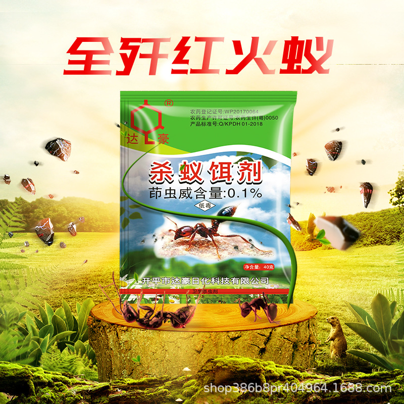 达豪 40 граммов муравья, убивающего агента приманки в дикой природе, чтобы устранить красных огненных муравьев. Домохозяйство красных муравьев используется для заражения всей доставки без гнезда