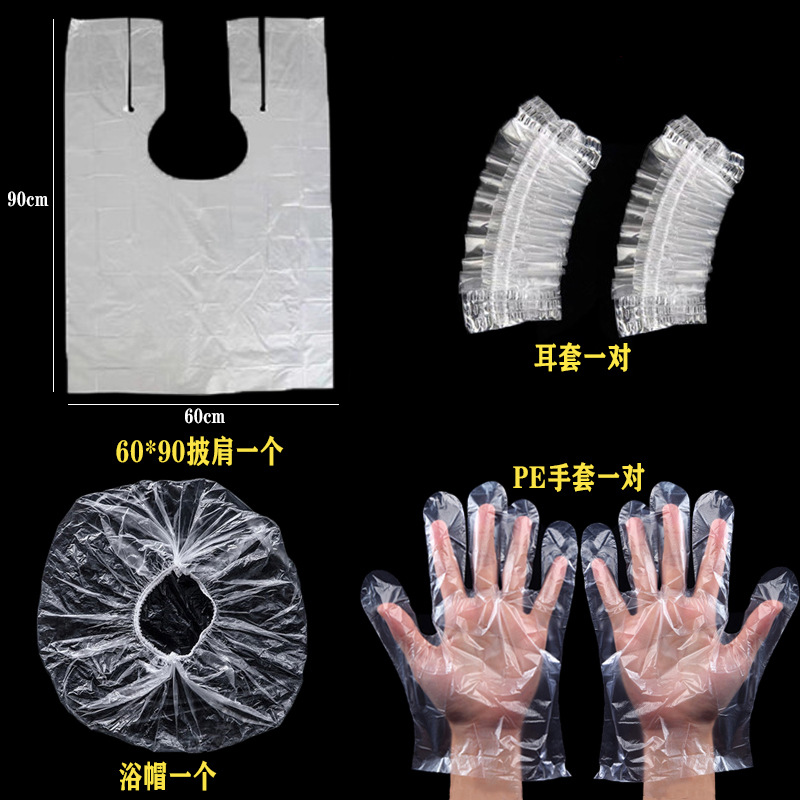 Одноразовый комплект, накидка, перчатки, шапочка для душа, 4 предмета, защита для ушей