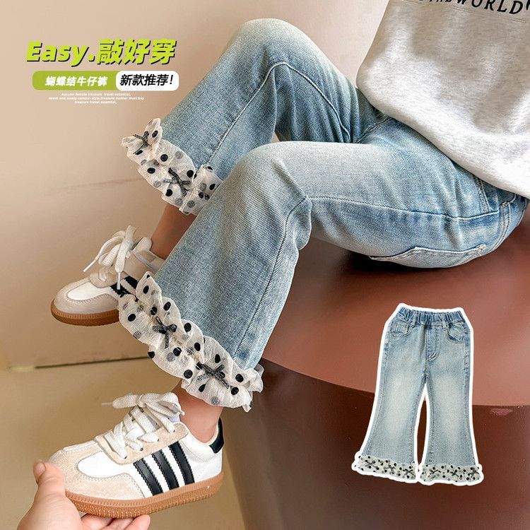 Весенние штаны, детские джинсы, повседневные брюки, штаны-клёш, новая коллекция, в западном стиле