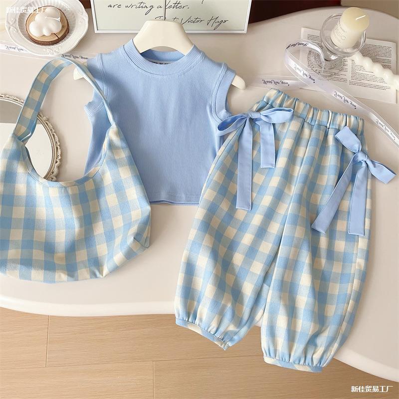 Летняя одежда, летний комплект, детский спортивный костюм для девочек, в западном стиле, короткий рукав