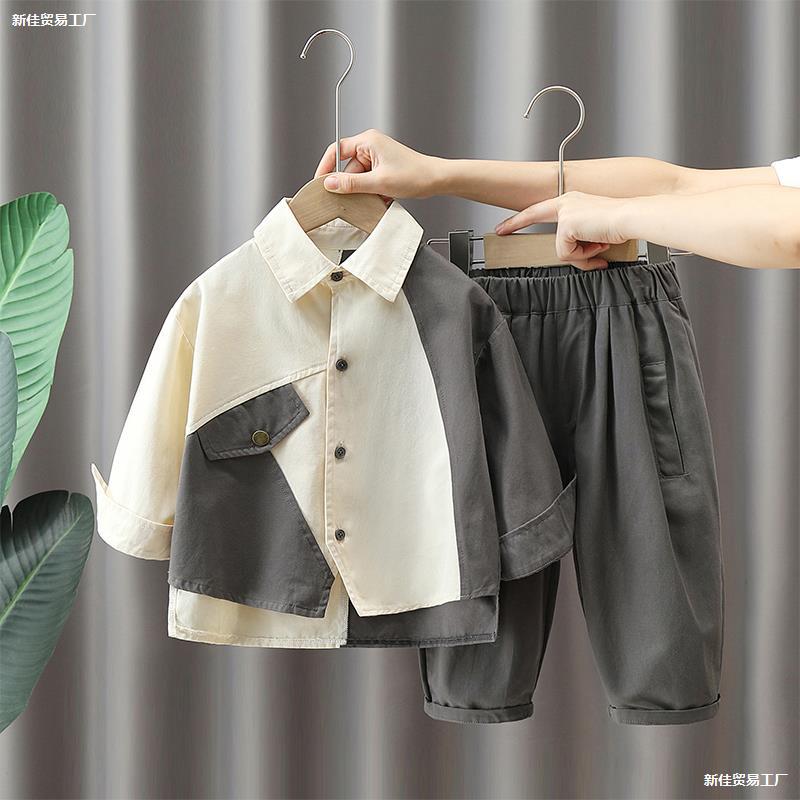 Детский комплект для мальчиков, осенняя рубашка, популярно в интернете, в западном стиле, осенний