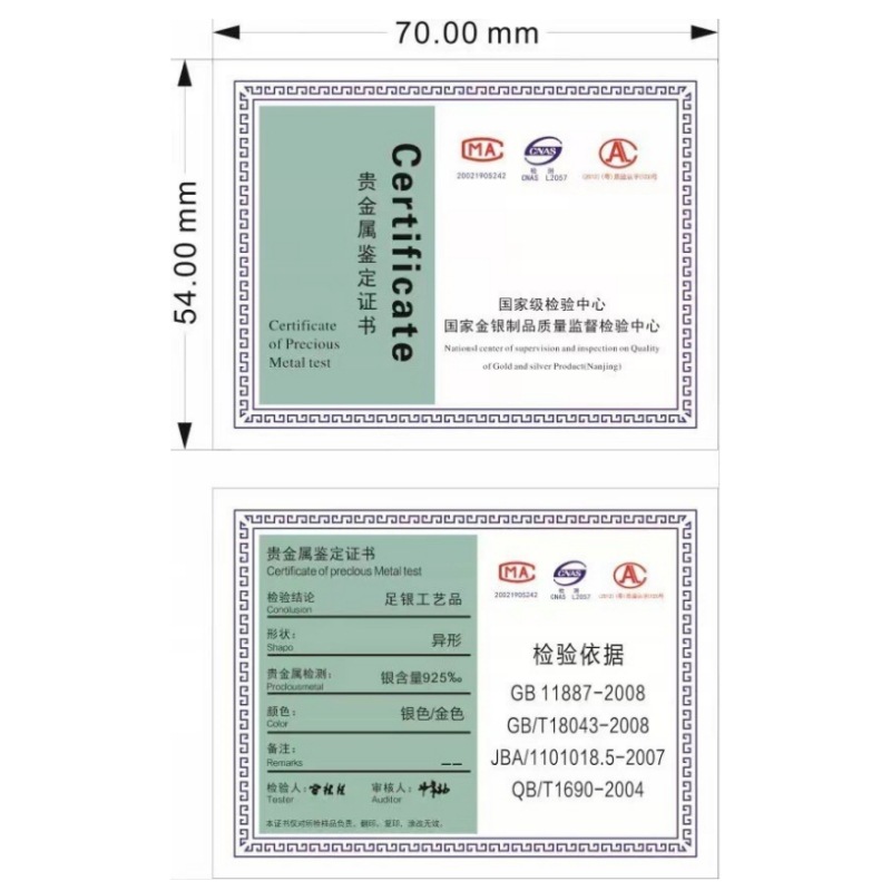 Золотая нога серебра S925 Золотая фольга ремесла для идентификации идентификации драгоценного металла