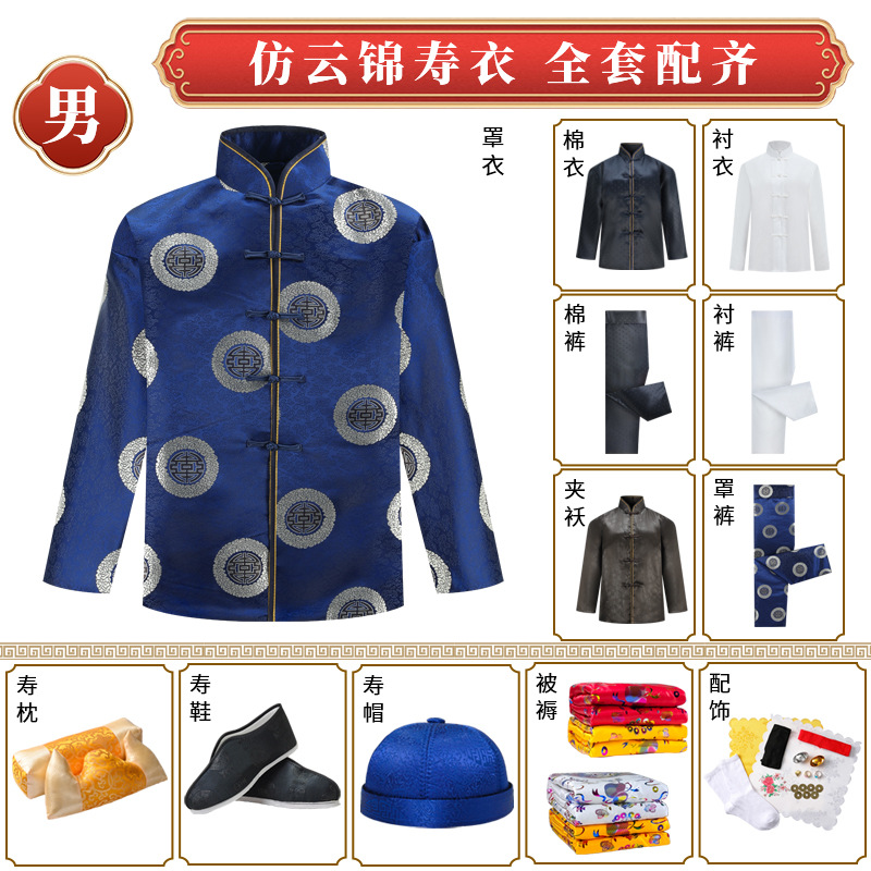Похороны высококачественных мужчин и женского стиля облачная парча для одежды Похороны Похороны умершие люди носят зубили китайское костюм для шелковых долков