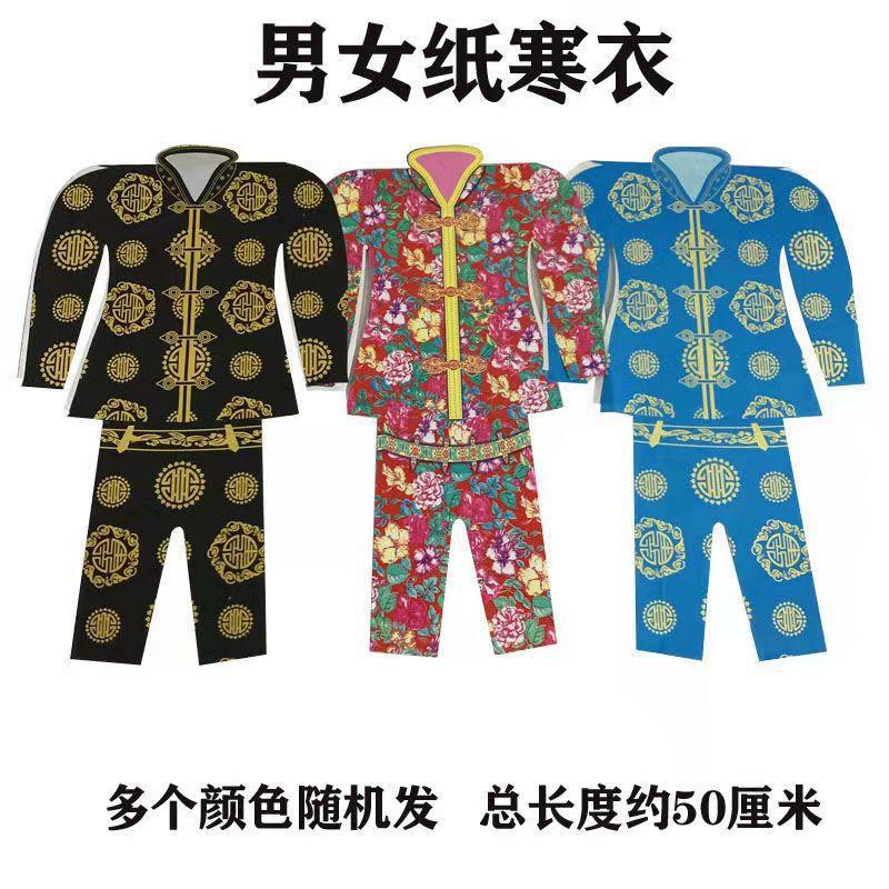Жертва поставляет мужчины и женские ткани для ботинки ожога бумаги бумаги бумажные деньги желтая бумага могила на слитка бумага Октябрь Октябрь Фестиваль холодной одежды