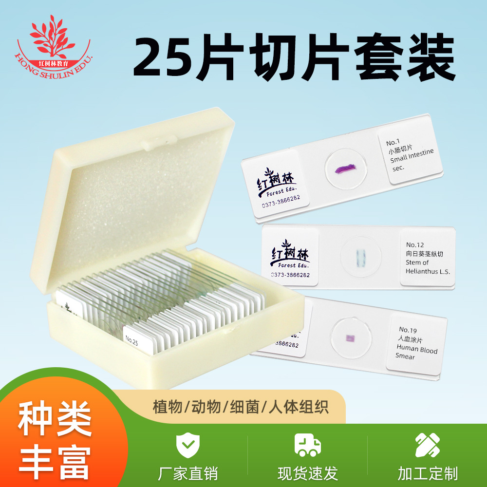 25 видов образцов клеток Чистая маркировка китайского и английского стеклянного стекла с водой J3228 Слайд животных и растений
