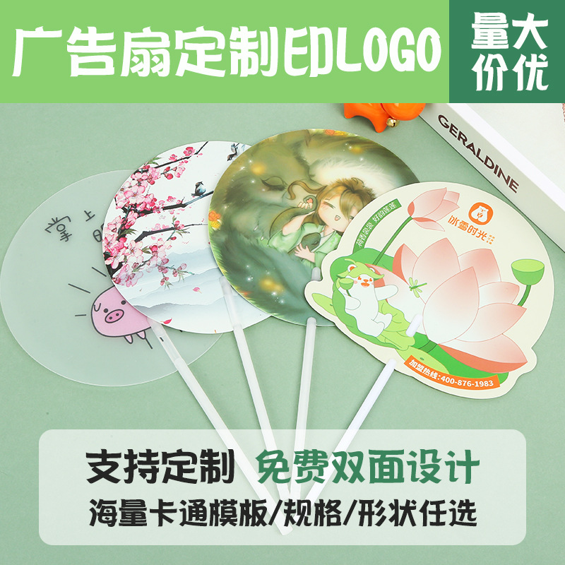Оптовая реклама PP Fan Fan Custom Stude Plastic Round Fan Glue Fan Dewelry Promotion Fan Recrintment Cartoon Advertising Fan Fan