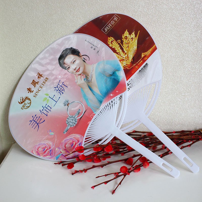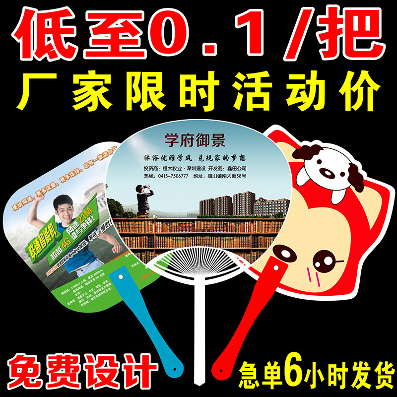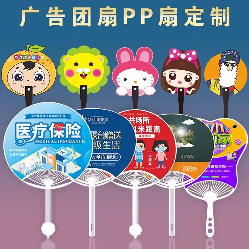 [广告扇胶扇房地产珠宝店pp团扇定做宣传印刷logo卡通塑料扇子定制]