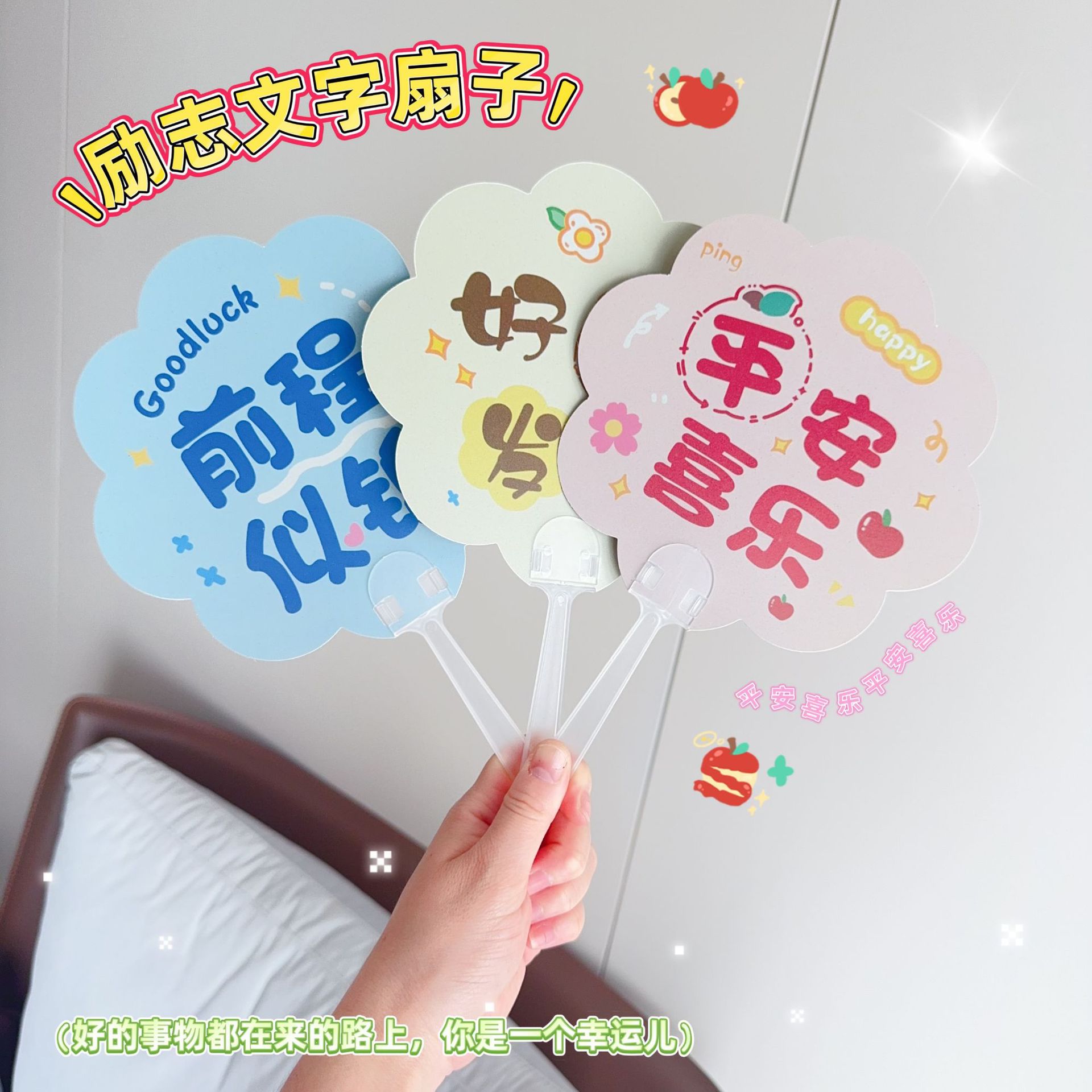 Ручной вентилятор с вдохновляющим текстом, хорошие вещи случаются, маленький вентилятор, мини-портативный пластиковый ручной вентилятор, летний милый маленький вентилятор