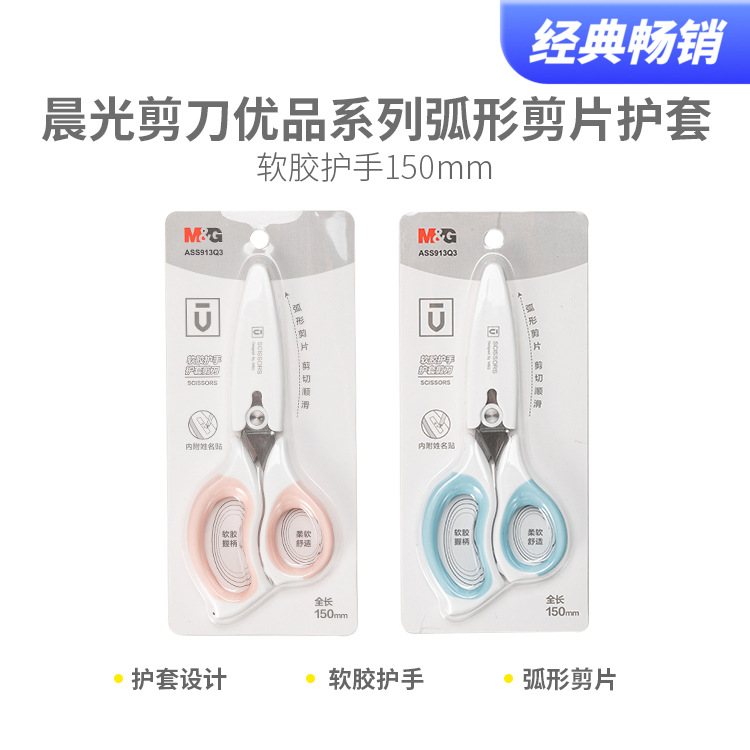 晨光 Бумага -ножницы, ножницы, укрытие для сдвига дуговой формы, мягкий клей 150mss913q3