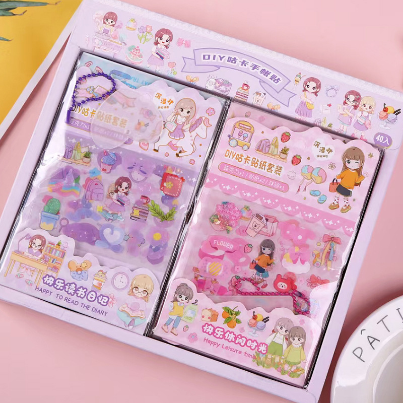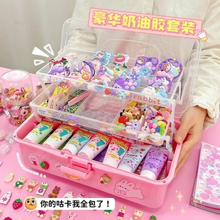 Кремовый комплект, милая подарочная коробка, детские канцтовары, наклейка, планировщик, подарок на день рождения, полный комплект