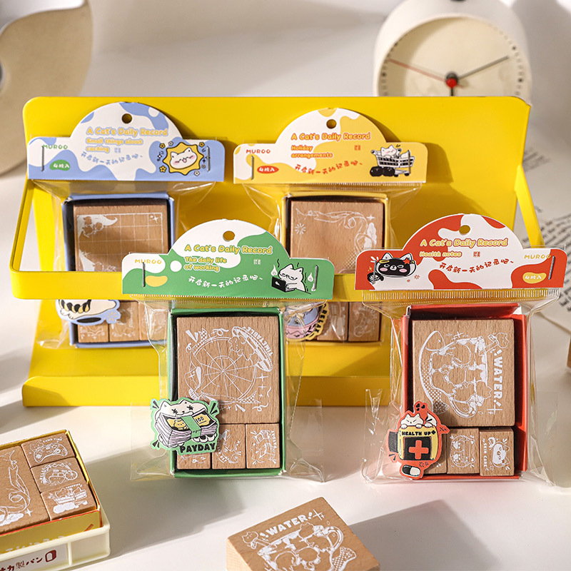 沐染 Деревянная милая печать, комплект, креативное мультяшное украшение