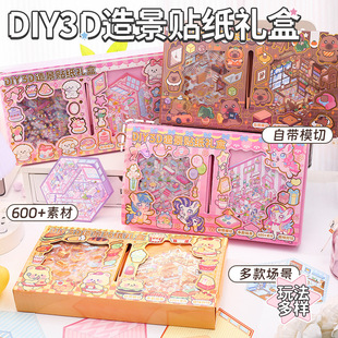 Наклейка, мультяшная подарочная коробка, милый комплект, детская хижина, «сделай сам», 3D, планировщик