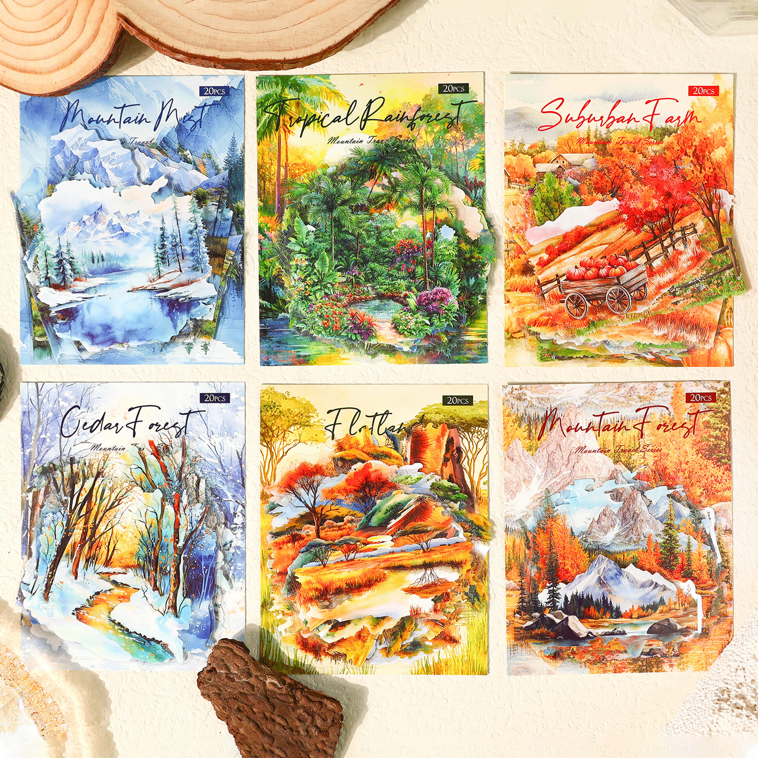 Трудовые древние леса и горы и реки серии путешествий ретро-ландшафт ландшафтная рука для ручной примечания. Наклейка Материал Украшение 20 картин