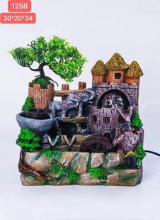 Источник товаров yiwu Новый рок -фонтан офис настольный ландшафтный бак бонсай феншуй колесо каменная мельница. Украшение воды.