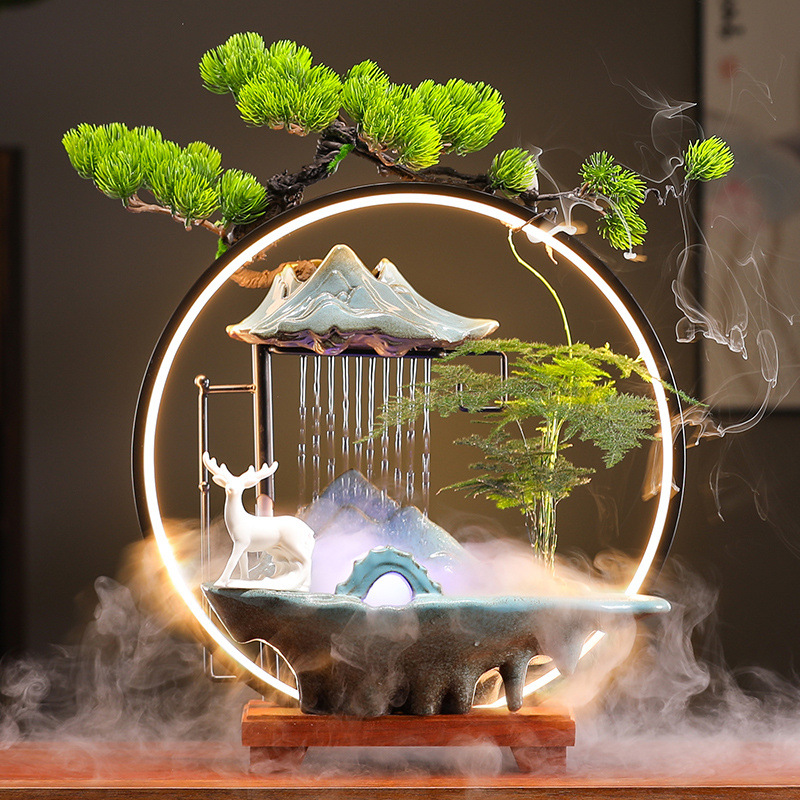 Креативный фонтан для гостиной, украшение, аквариум для офиса, увлажнитель воздуха, на удачу, китайский стиль